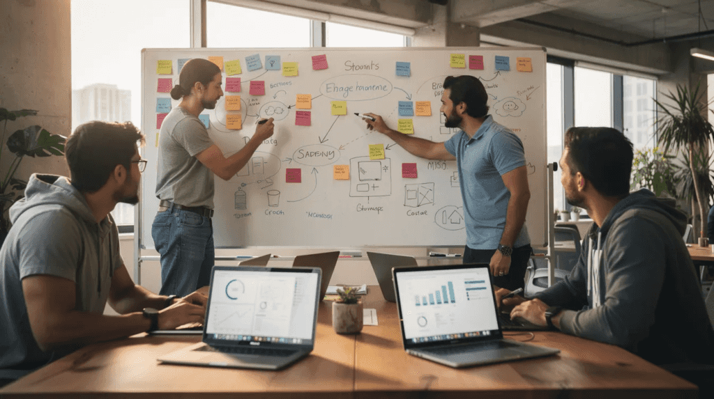 A typical flow: discovery workshop → scoped MVP → market validation (3-6 months) → then make an informed choice between a technical cofounder or recruiting a CTO.